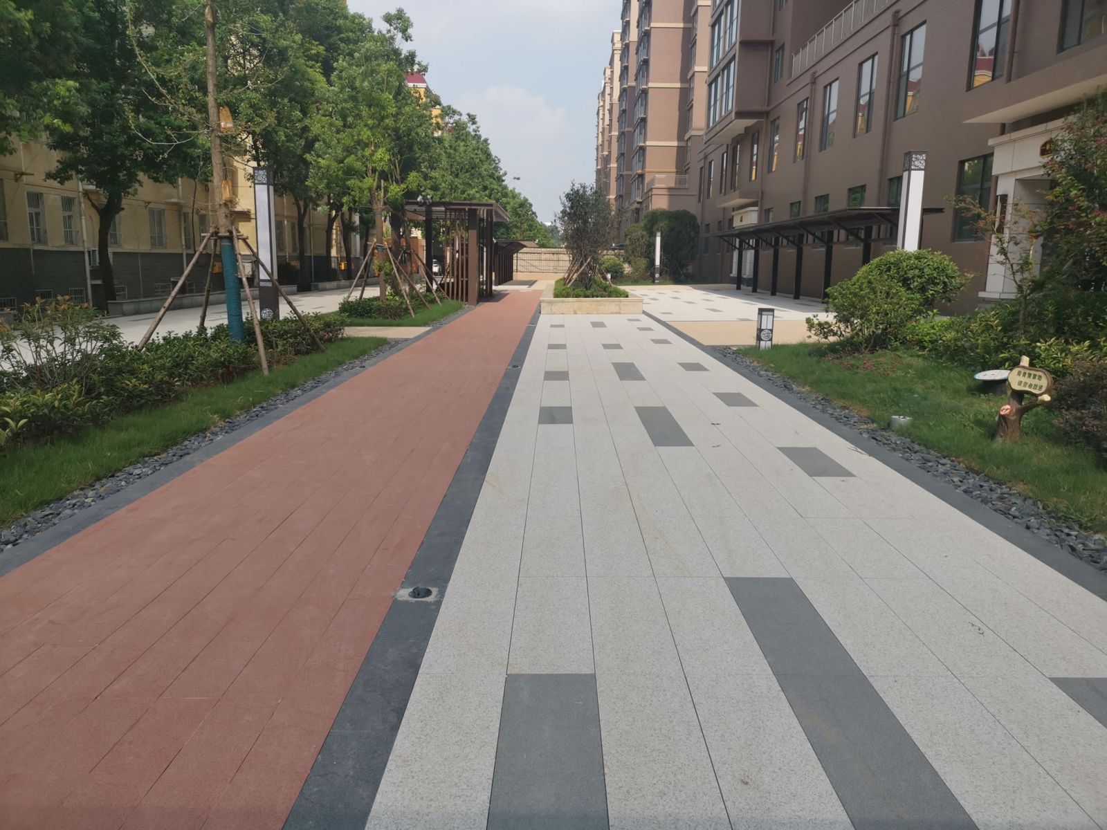項目位于歷史文化名城南陽,為高層住宅小區(qū)。 小區(qū)園林使用協(xié)進(jìn)地鋪石瓷磚搭配鋪貼,堅固耐用易清潔。 整體效果簡潔大氣,色澤均勻。