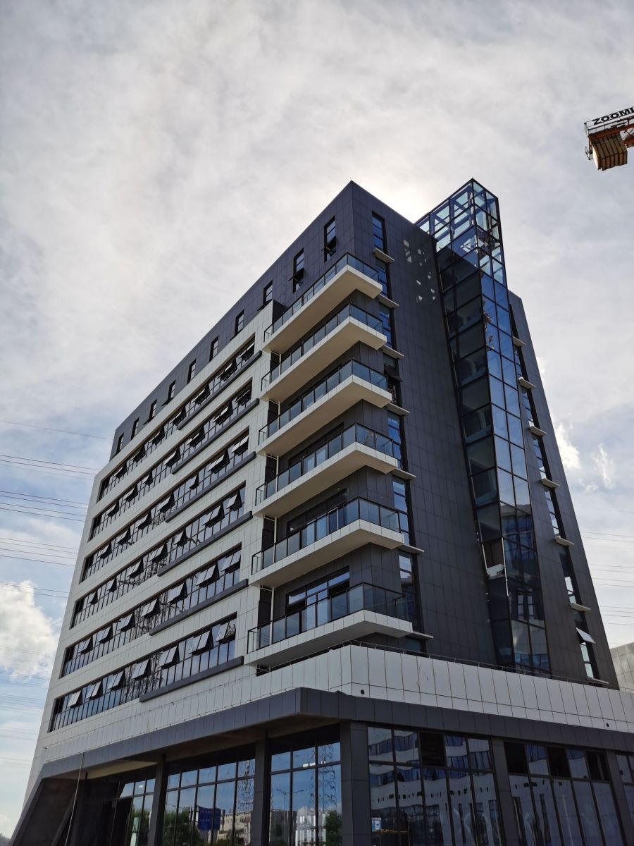 協(xié)進(jìn)工程案例:珠海共電大廈 使用產(chǎn)品:600*1200陶瓷薄板 整棟建筑外立面使用白色、灰色陶瓷薄板鋪貼裝飾。 整體效果簡約、前衛(wèi),現(xiàn)代感強(qiáng)烈。