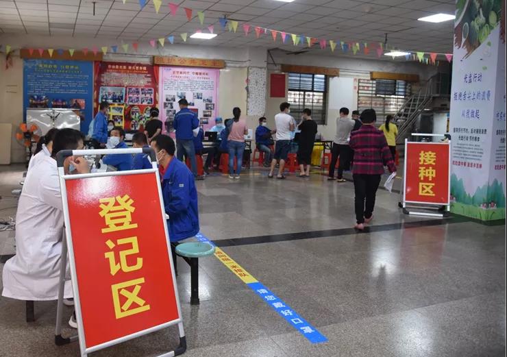 為科學有效保障員工身心健康,促進社會和諧發(fā)展,做到防控、生產(chǎn)兩不誤,在上級政府的關(guān)心支持下,官橋醫(yī)院、漳里村干部等的協(xié)助下,公司工會積極與政府相關(guān)單位對接,讓疫苗接種進企業(yè),組織全體員工分批有序在廠區(qū)接種第一針劑新冠疫苗。