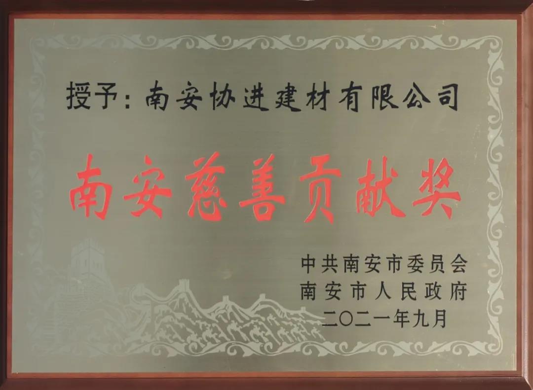 公司倡導“協(xié)進一家親,生活更開心”的企業(yè)文化理念,在發(fā)展的同時不忘回報社會,通過南安市慈善總會、官橋鎮(zhèn)政府、官橋商會以及其他渠道積極、熱心參與教育、醫(yī)療(抗疫)、關(guān)愛老人、扶貧濟困、文化體育等各項社會公益事業(yè)。榮獲南安市委、市政府頒發(fā)“南安慈善貢獻獎”。